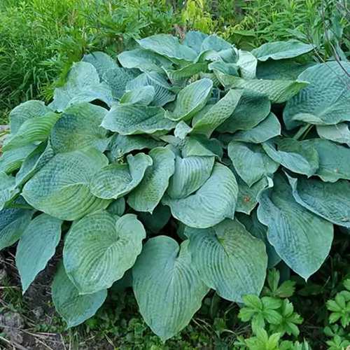 Эта хоста обладает уникальными пузырчатыми листьями, имеющими форму широкого сердца с тупым концом. Длина листьев достигает 36 см, они плотные и морщинистые, с ярко выраженным жилкованием. В начале сезона их окрас насыщенно голубой, который постепенно трансформируется в сине-зеленый к середине лета. Декоративность листьев сохраняется на протяжении всего вегетационного периода.