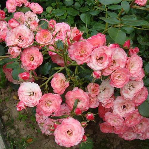 Каждый цветок этой розы обладает неординарной окраской — бордово-кремовый с розовой каймой, что делает его настоящим произведением искусства. Основной оттенок включает яркие розовые и кремовые тона. Цветы имеют розетковидную и густомахровую форму, с диаметром до 4-6 см и количеством лепестков от 40 до 50. Это делает их особенно привлекательными в массовых посадках, так как на одном стебле может находиться от 10 до 50 цветков, создавая шикарное цветочное покрывало. Роза Пат Де Велюр не обладает ярким ароматом.