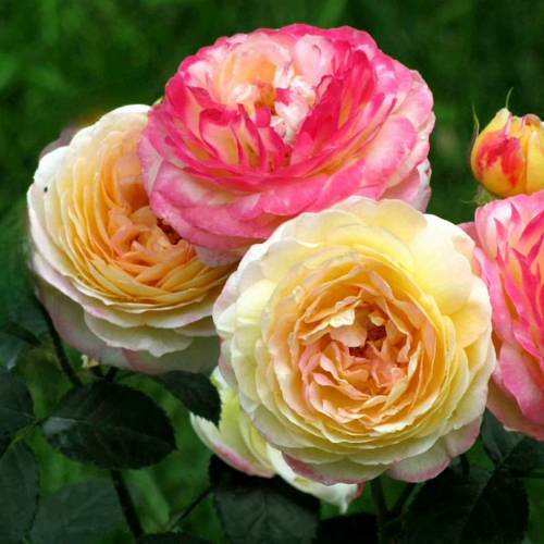 Форма бутона яйцевидная, а форма цветка — шаровидная, что придает им элегантный вид. Цветы располагаются на стебле по одному, реже по три, создавая эффектные соцветия. Аромат Розомана Жанона фруктовый, с изысканными нотками мандарина и ванили, обладает средней интенсивностью, что делает его приятным для восприятия.
