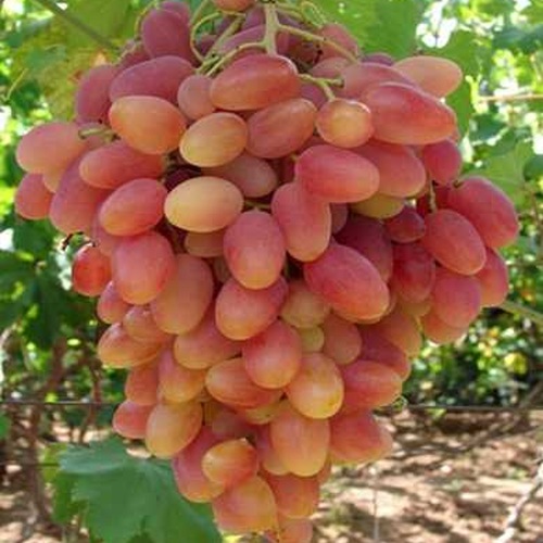 Грозди крупные, цилиндро-конические, средней плотности. Средний вес грозди — 600–1000 г, при хорошем уходе превышает 1 кг. Ягоды крупные, овальные, светло-розовые с янтарным оттенком, массой 10–15 г. Мякоть плотная, сочная, кожица средней толщины и хорошо переносит жару. Вкус сладкий, гармоничный, без приторности. Сахаристость достигает 18–20 %, особенно хорошо проявляясь при большом количестве солнечных дней.