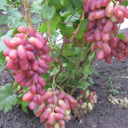 Куст сильнорослый, высота лозы 4,5–5,5 м, ширина — 2–2,5 м. Побеги мощные, цветки обоеполые — опылители не нужны. Среднеранний срок созревания — 95–105 дней, сбор урожая в августе. Грозди цилиндро‑конические, 700–1200 г, отдельные до 1,5 кг. Ягоды крупные, овальные, 10–16 г, косточек 1–2. Мякоть плотная, сочная, умеренно хрустящая. Сахаристость 18–21 %, ягоды подходят для свежего употребления и частичной сушки.