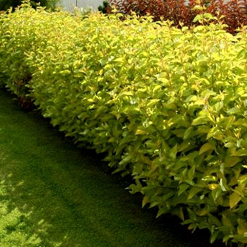 Если вы хотите сделать на своем участке оригинальную живую изгородь, тогда вам нужно выбирать пузыреплодник. У него очень декоративный вид. Пузыреплодник Дартс Голд – компактное до 1,5-2м в высоту. Листья более яркие лимонно-желтые летом и оранжевые осенью. В начале лета появляются бело-розовые цветы, плоды созревают к сентябрю. Почему для живой изгороди необходимо выбрать именно пузыреплодник:
